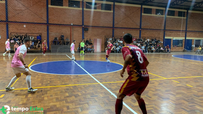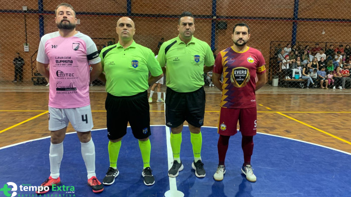 No primeiro jogo da noite, Vó Eli e Oito e Meia fizeram uma partida equilibrada no primeiro tempo, com uma chance clara para cada lado.